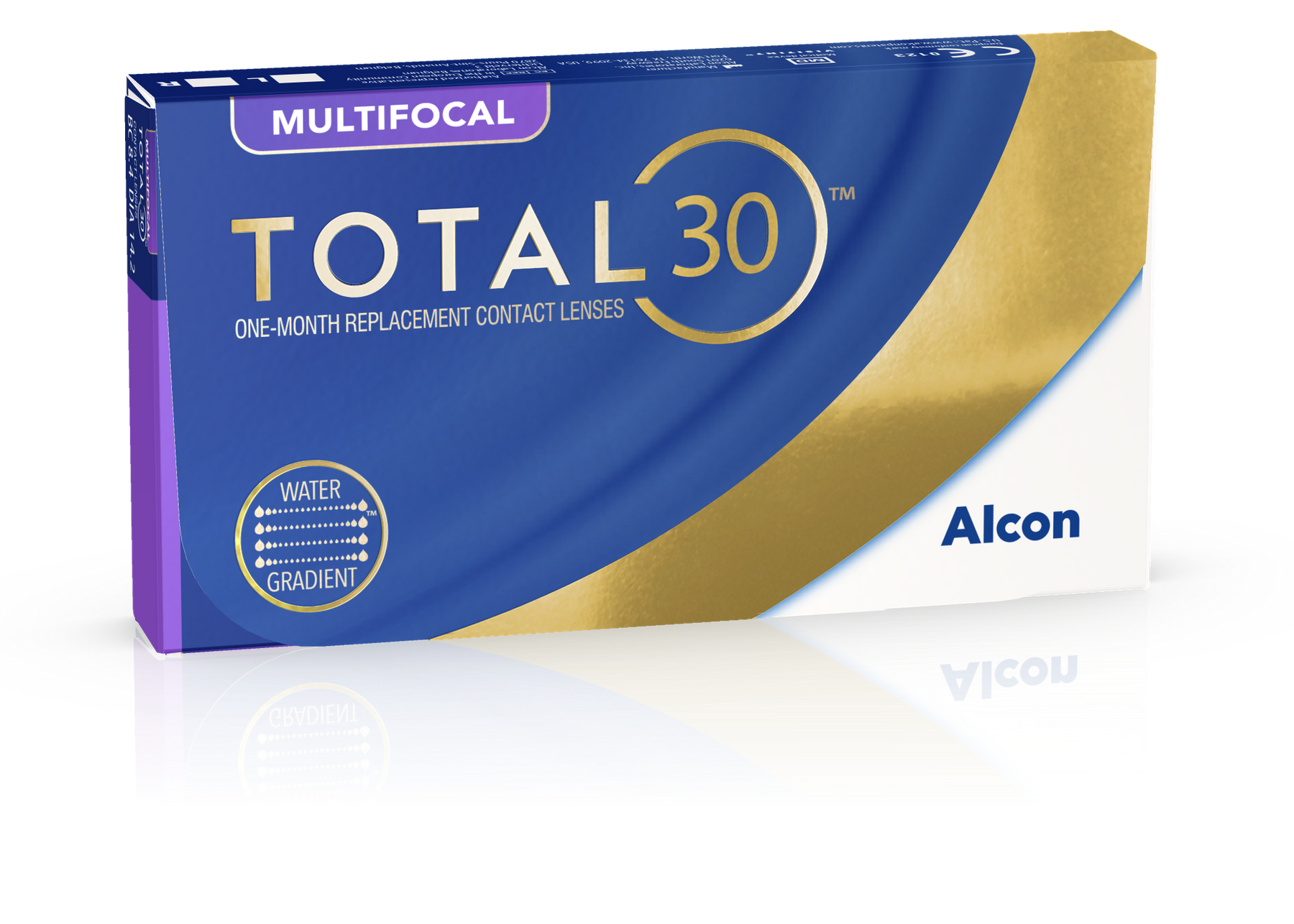 TOTAL30® Multifocal Contact Lenses are reusable monthly lenses from ALCON, feature CELLIGENT® Technology helps resist lipid and bacterial adherence. Use Water Gradient Technology to mimic the human eye's surface structure to provide a lens that feels like nothing. Experience exceptional comfort all month long — they feature:
